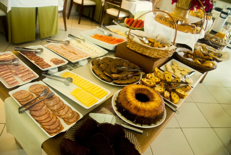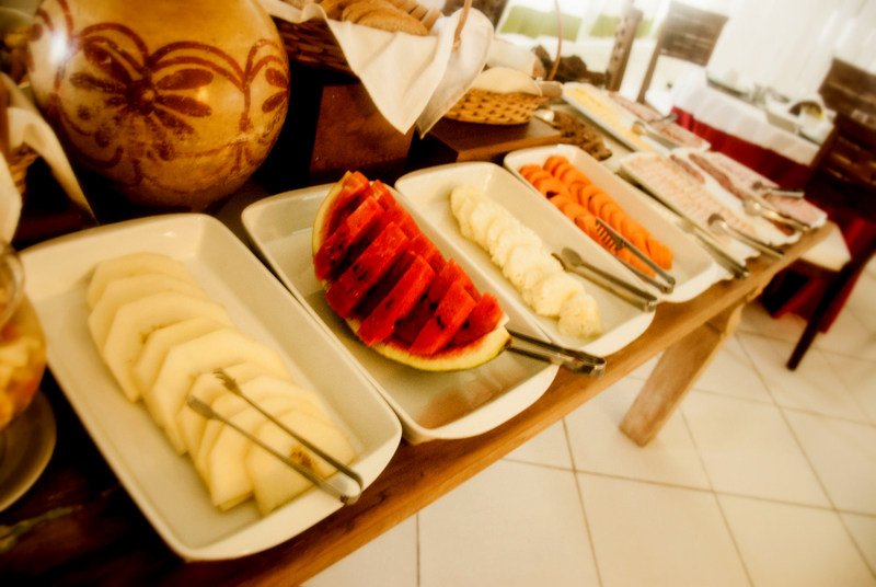 The Pousada offers an enormous buffet breakfast, with a healthy variety of nuts, fruit, bread, cheese, pastries, yogurt and juices.
